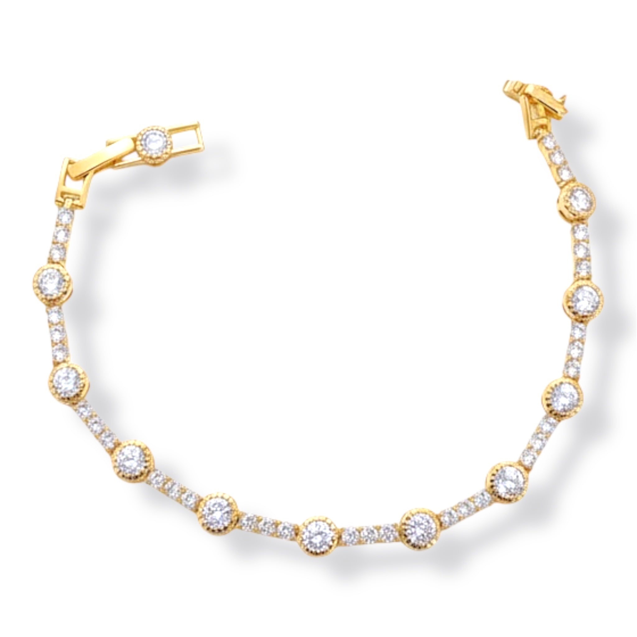 Redéfinissez l'élégance à votre poignet avec notre bracelet phare. Alliant le charme vintage d'une monture dorée travaillée et l'éclat pur de cristaux soigneusement sélectionnés, ce bijou est la pièce maîtresse qui manquait à votre collection. ✨