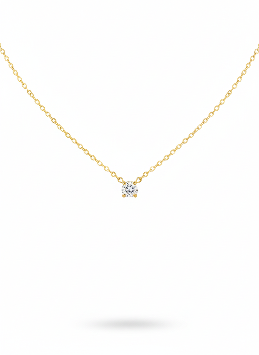 Découvrez notre collier Éclat Pur, une pièce intemporelle conçue pour illuminer votre décolleté avec une discrétion absolue. Ce solitaire délicat, doté d'un cristal scintillant monté sur une chaîne fine, est l'indispensable de toute boîte à bijoux. Il apporte cette touche de lumière subtile qui sublime aussi bien une tenue décontractée qu'une robe de soirée.
